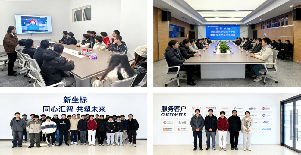 为深化产教融合,帮助学生直观了解行业发展现状与企业岗位需求,搭建理论知识与实践应用的沟通桥梁,本学期第十九周,智能光电制造技术教研室组织数控技术专业学生开展企业认识实习。专业教师分队带队,将学生分为四组,分别赴杭州冠亚饮料有限公司、杭州新坐标有限公司、方圆检测认证有限公司、杭州时课智能科技有限公司开展实地参观学习,帮助学生在拓宽行业视野,明晰专业发展方向。
